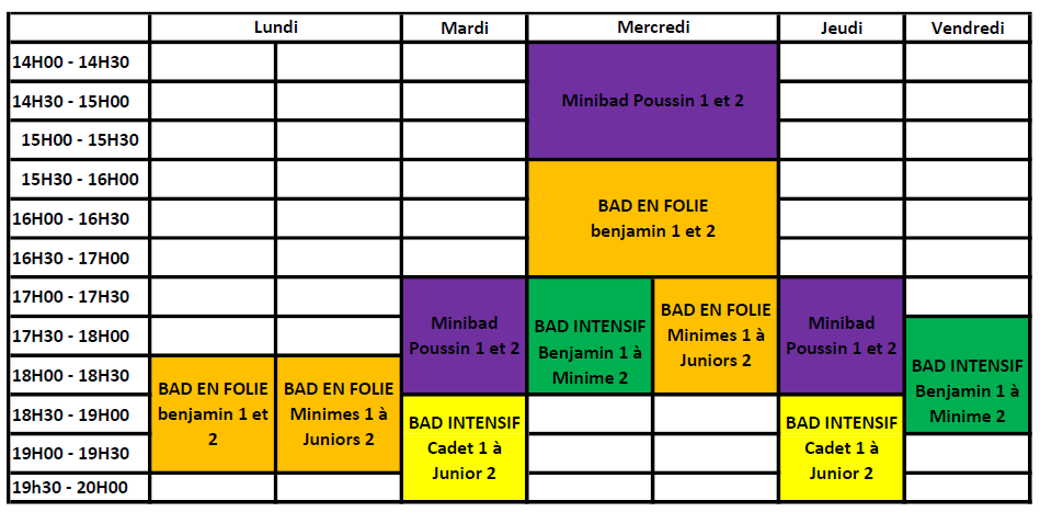 Voici la liste des créneaux horaires et lieux d’entrainement jeunes pour la saison 2020-2021